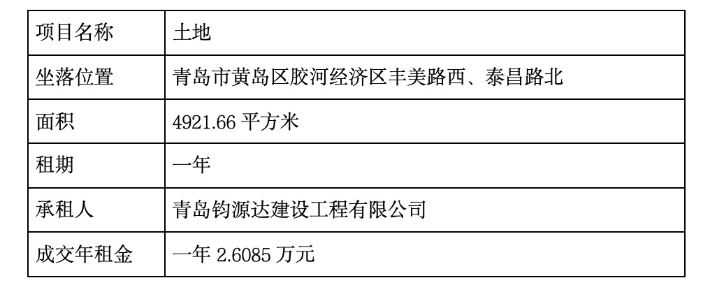 项目位于青岛市黄岛区胶河经济区丰美路西、泰昌路北,土地面积4921.66平方米,租期1年,现状出租。